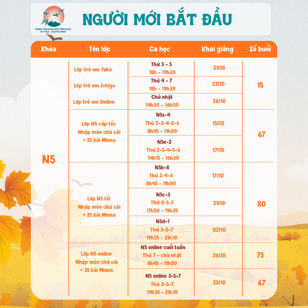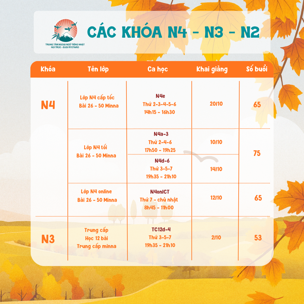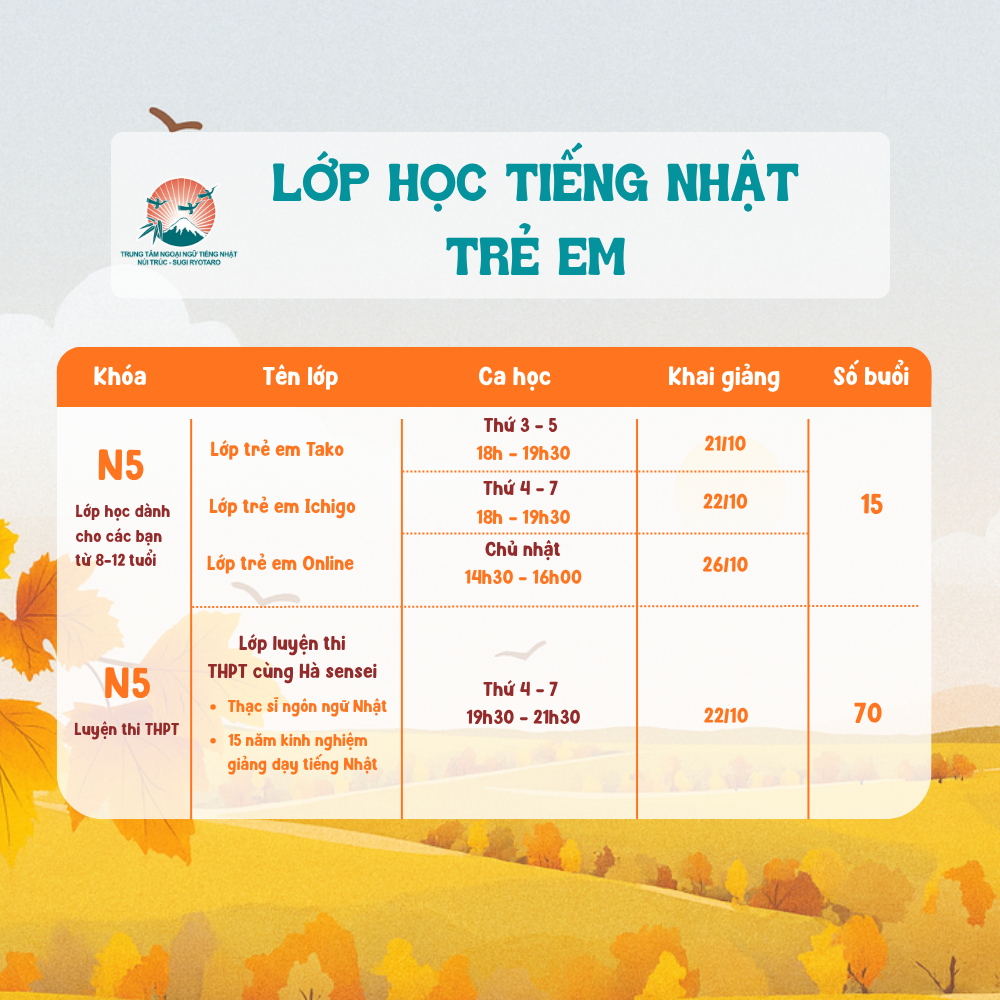 lịch khai giảng các lớp tiếng nhật ONLINE tháng 10/2021